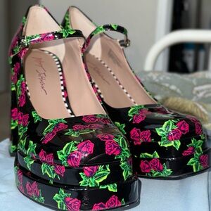 Betsey Johnson Black and Pink Floral Platform Shoes