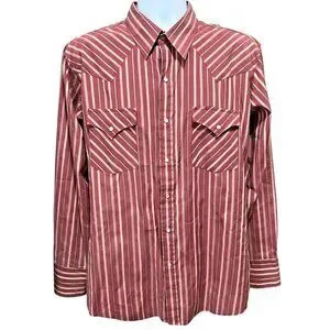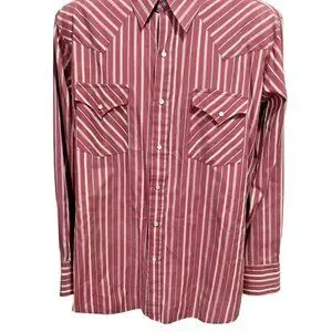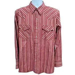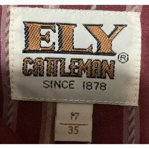 ELY Cattleman Western Shirt Mens 17 Maroon Red Stripe Rodeo Pearl Snap Long Slv