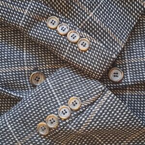 Elevate your style with this classic black and gray blazer. Perfect for any formal occasion.