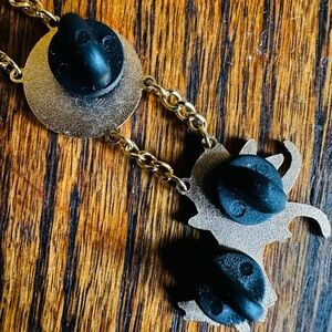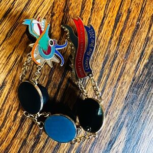Stylish brooch pin featuring blue circular links and a dragon charm. Accented with articulated goldtone chain links. Celebrates Chinese NY 2002