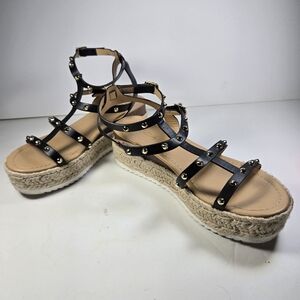 Soda Somehow Open Toe Espadrille Wrap Adjustable Size 7 Woven Platform Sandals