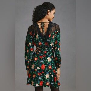 NWOT ANTHROPOLOGIE rose Lace V-Neck Mini long sleeve Dress