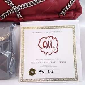 Extremely rare limited edition with CERTIFICATE OF AUTHENTICITY 37/40 made before designer Carlos Falchi passed away. Very rare and a handful of colors made available. Quilted and chained leather hand sewn in New York. Beautiful color of red. Lambskin leather.