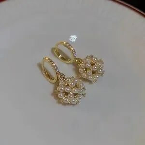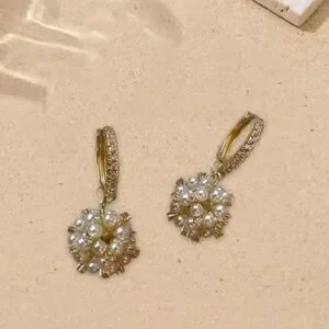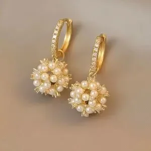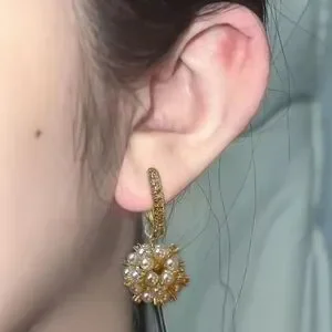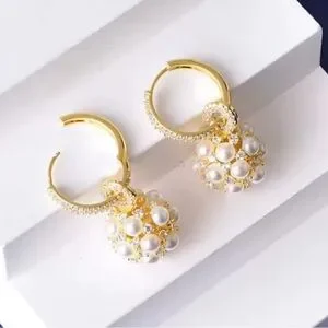 These exquisite earrings from Anthropologie showcase a delicate drop design, featuring lustrous pearls set in a radiant gold finish. Perfect for elevating any ensemble with a touch of elegance and sophistication.