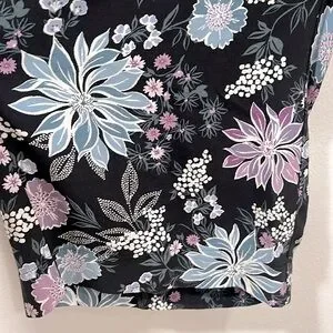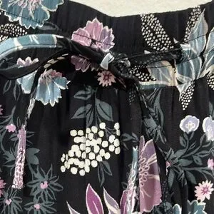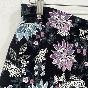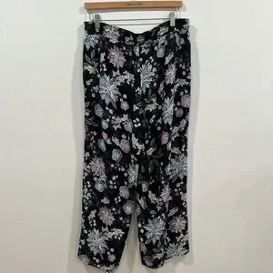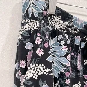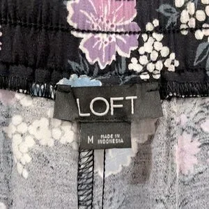 LOFT Floral Print Wide Leg Ankle Pull- On Pants, Size M, New without Tag, excellent condition, no flaws, 100% viscose, elas waistband, two side pockets , color black with blue, white and purple floral print, approx measurements: waist 17 inches, inseam 26 inches, front rise 11,5 inches, open leg 11 inches, pet/ smoke free home, shipping next day, offers welcome!