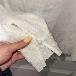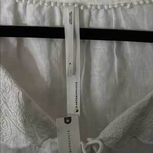 This off white/cream blouse from Anthropologie features a charming sailor collar and elegant lace details.