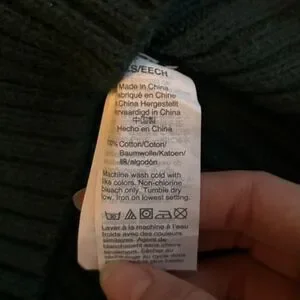 100% cotton forrest green mock neck cable knit sweater