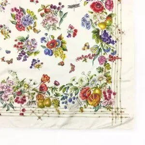 GUCCI Floral Fruit Motif Scarf 100% Silk EUC