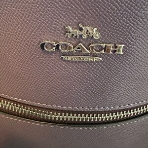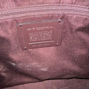 Sophisticated Coach tote in dark purple. Sleek design with front zipper pocket. Ideal for daily use.