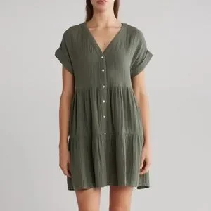 Chic mini dress by Madewell. Features a button-down front. Relaxed fit with short sleeves. Perfect for casual outings.
