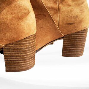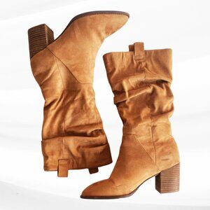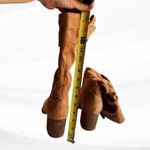 Report Tariq Tall Shaft Faux Suede Bootie Tan Block Heel Slip On/Pull Tab Size 9