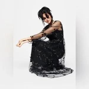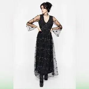 - Black floral embroidered tulle maxi dress