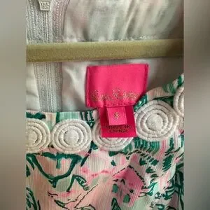 Vibrant sleeveless dress featuring an exotic print. Perfect for a sunny day. Chic dress with vibrant floral design. Ideal for sunny days. Dress is in excellent condition and clean. Pre owned but not worn many times. No flaws. Lily Pulitzer size 8 girls. Adorable white appliqué detail on front and back collar. zip back.