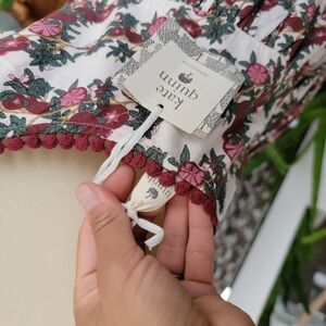 The print is pomegranates and is perfect for summer! New and never worn! purchased last year to wear, but it was too big in the bust and underarms. I am 28 inches around with A cup so it didn't look right sadly. I would say this will fit a size small and someone who has a more blessed chest area, or a medium. I included the measurements. the straps are adjustable and the dress has pockets. It is 100% gauze cotton and is so light and airy! They sell children's clothes in this print, if you go hunting u can find a match. I purchased this for $68. Never worn. NWT.