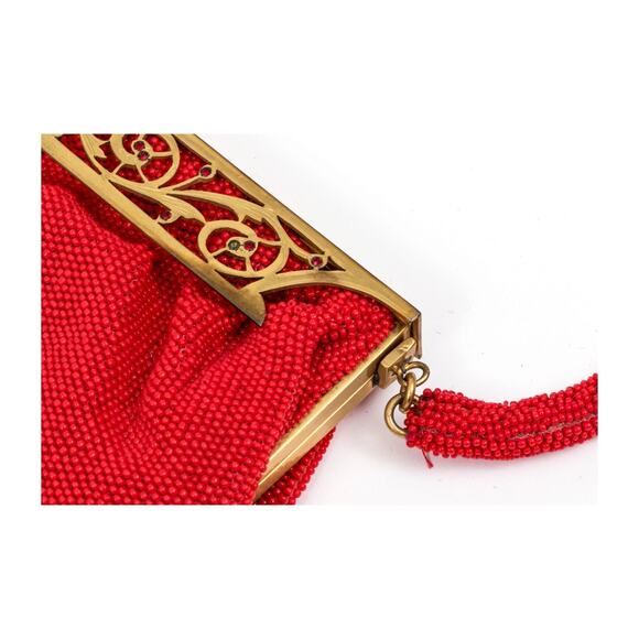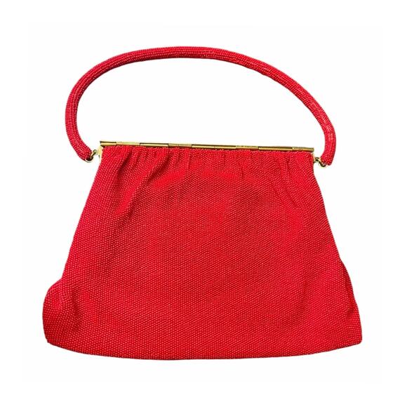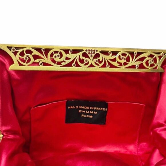 CHUNN PARIS VINTAGE Red Beaded Evening Clutch Handmade Handbag Metal Rhinestone