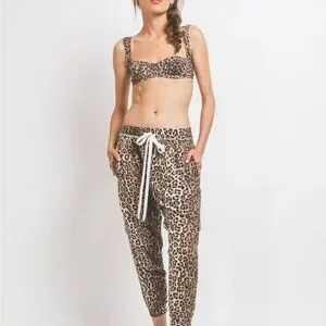 Chic Ragdoll Los Angeles sports bra top with a striking leopard pattern. Pull over style. Features brown and black tones. Would be adorable under a blazer, jumpsuit, or overalls.