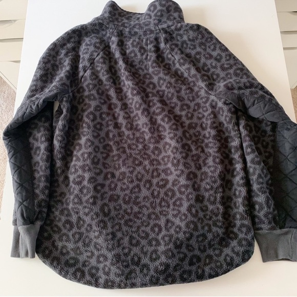 Abercrombie & Fitch A&F asymmetrical leopard print quilted snap pullover