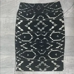 Chic pencil skirt with a geometric pattern. Perfect for versatile styling. This skirt is so cute and stretchy which makes it incredibly comfortable! Dress it up or dress it down! Rarely worn and in great condition!