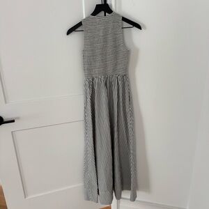 This never-before-seen style is all things Spring wrapped up into a single dress. Made from our effortless Cali Poplin, this style features a high neck-smocked bodice, pleating on the skirt, and multi-directional stripes for that extra...je ne sais quoi.