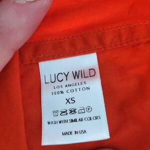 Made in Los Angeles the Lucy Wild collection uses Japanese cotton to create her chic, modern dresses. Made into crisp shapes with subtle details that render them unique but still useful. One piece dressing ease. The dress is available in the perfect blue red and draws on a modern take of the shirtdress. Wear it crisp, wear it wrinkled.. sneakers to pumps or brogues. These dresses are a-line in shape. Sizing XS is based on fit through the chest and shoulders. Most women will fit into 2 sizes waist and hips are free. Length is approximately 24 from waist to hem.