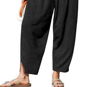 Women's Linen Harem Pants Casual Loose Fit Wide Leg Cropped Lightweight