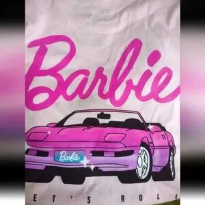 Barbie Movie Fashionista Pink Iconic Logo Dream Car Pink T Shirt Large