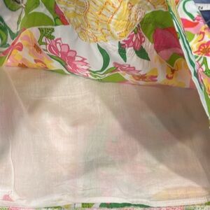 EUC/Lilly Pulitzer Fully Lined Yellow Pink Embellished Mini Pencil Skirt with 2 front slit pockets and back zipper with button closure