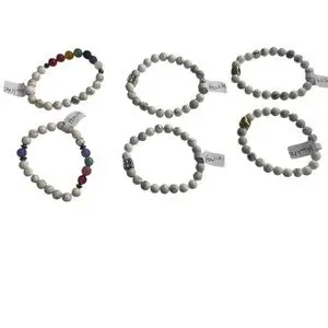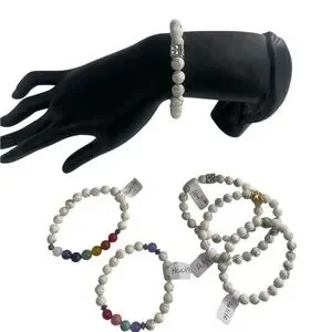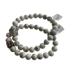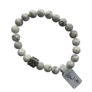 Howlite White,Grey, gemstones with silver center, Stretch, elastic Bracelet.