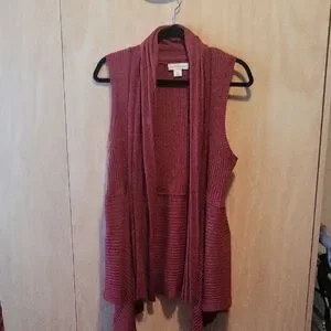 Embrace the cozy elegance of this Christopher & Banks shrug sweater, crafted in a rich rusty maroon hue. Its open-front design and soft knit fabric make it an ideal layering piece for cooler seasons. Perfect for adding a touch of warmth and style to any outfit.