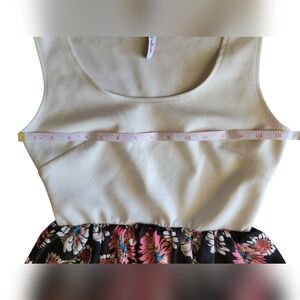 the upper white part of the dress has a bit of pilling, does not come with a tag for material, washing instructions, or size. I believe its a small or extra small