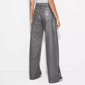 NWT Wild Fable Gray Metallic Coated High Rise Baggy Wide Leg Jeans - Size: 4