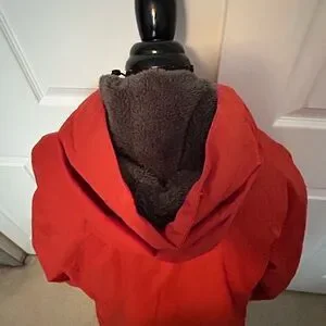 Cozy gray plush lining jacket with vibrant orange interior. Perfect for chilly and raining days. In new condition without tags.