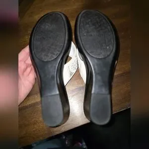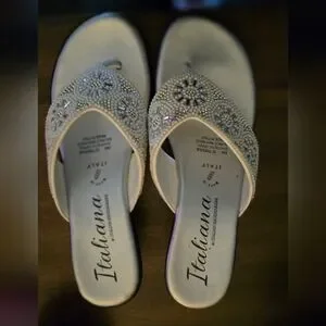 Elegant sandals with intricate silver beading. Perfect for adding a touch of glamour. 2" heel, size 8.