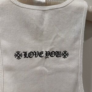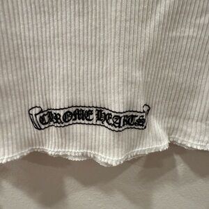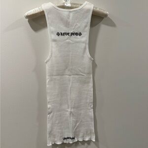 Classic white sleeveless top with bold Chrome Hearts text on the back. Ideal for everyday style.