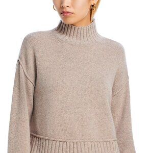 Aqua Cashmere Boxy Mock Neck Medium Beige Cashmere Sweater 2XL NWT
