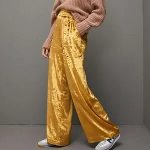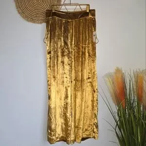 Anthropologie, New, Maeve Anastacia Gold Wide Leg Crushed Velvet Trouser Pants, Size Medium