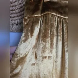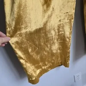 Full Length. Gold Yellow Crushed Velvet Fabrication.