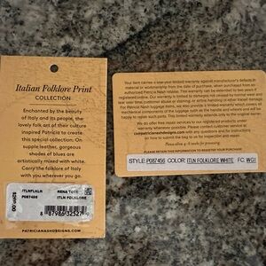 Patricia Nash Italian Folklore Rena Tote New without tags attached. Retails at $269. Asking $159