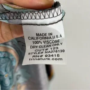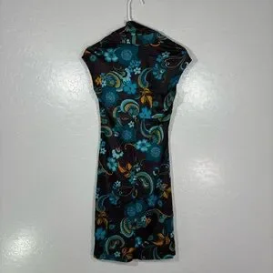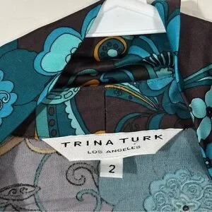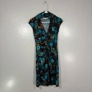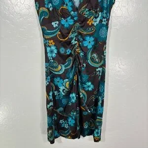 Trina Turk Brown & Blue Floral Dress Cap Sleeve Middle Ruching Viscose Size 2