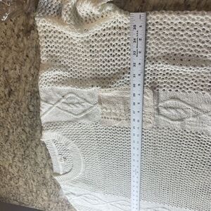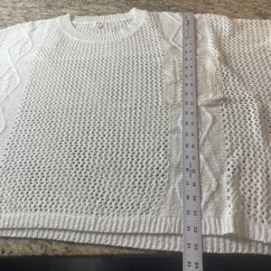 Pol Anthropologie Ivory Open Knit Oversized Pullover Boho Sweater Lace Pocket