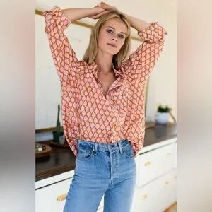 Emerson Fry Orange and White Patterned Blouse