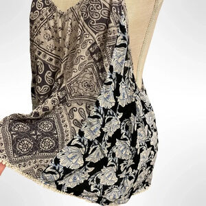 Like new condition. Several shades of blue in a paisley print. T-back, oversized. Ivory stitched edging. So cute with jean shorts!
