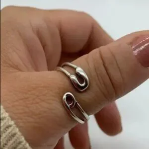 Let a touch of your attitude shine and make a bold statement with this stylish Safety Pin Ring, made of sterling silver. The safety pin shape gives this ring a modern and edgy look, making it the perfect choice for anyone looking to add a splash of fun into their everyday style.