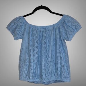 Express Light Blue Lace Off the Shoulder Crop Top NWT