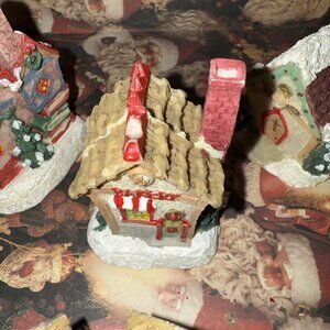 Vintage Christmas Village Houses Manger Building Wooden Ornaments Lot Of 4 Mini. Condition is Used.