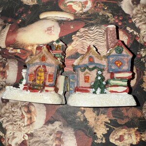 Vintage Christmas Village Houses Manger Building Wooden Ornaments Lot Of 4 Mini