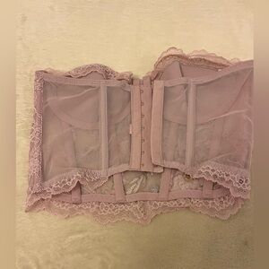 Chic floral bustier top with lace trim. Features vibrant floral patterns on a soft base.