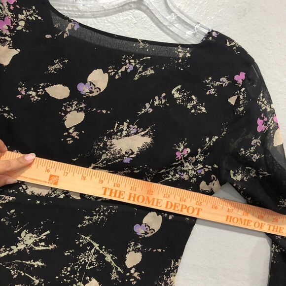 ann taylor 100% silk top xs small black womens sheer chiffon dressy flowers