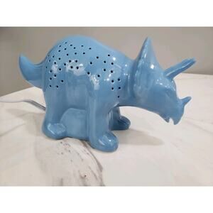 Cute ceramic dinosaur lamp from Target - measures approx 10 inches long x 6 inches tall. Works as it should. Light bulb is included. Lamp has no chips or cracks, has an on / off switch on the power cord - displays beautifully.