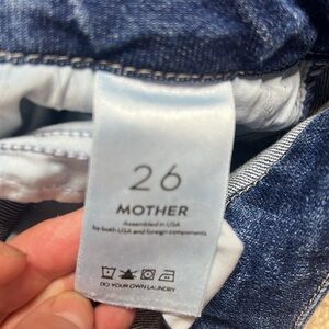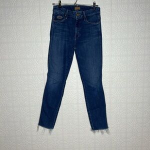 MOTHER High Waisted Double Looker Ankle Fray Embroidery Jeans Fruit Cart…